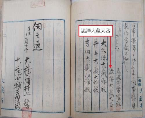 こちらは造幣権頭の馬渡俊邁(まわたり としゆき)と渋沢が連名で、大久保や井上らに宛てて提出した文書の一部です。日付は明治4年11月6日付で、渋沢が大久保との国家予算をめぐる衝突から、井上に説得されて大阪に出張し、馬渡とともに造幣局の事務を監督していた時期にあたります。