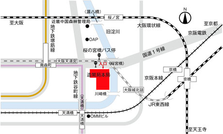 JR環状線「桜ノ宮」駅又は「京橋」駅下車、徒歩約15分